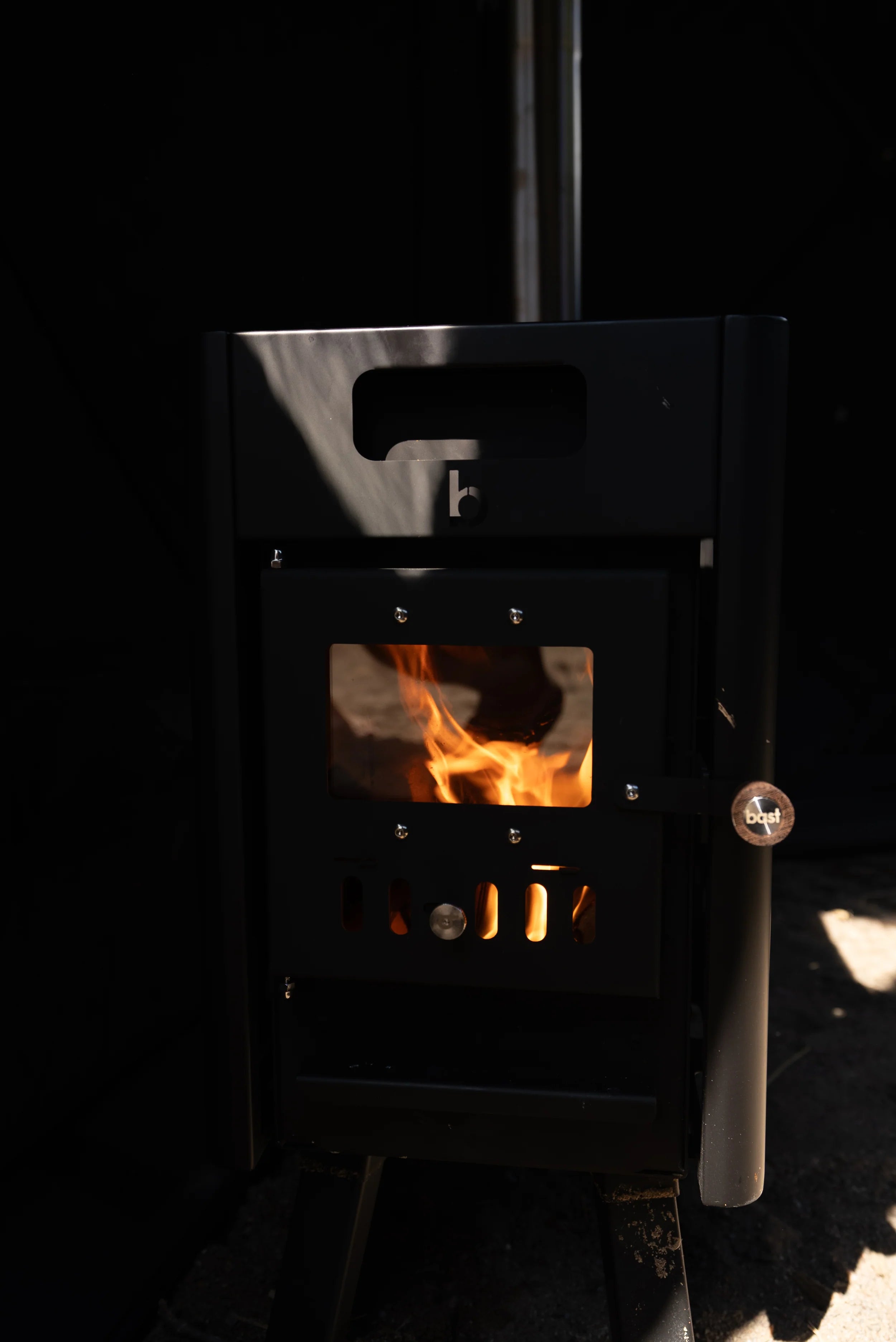 Sjálft tjaldið er sett upp á innan við tveimur mínútum með því að toga út fimm hliðar þess í einu samfelldu handtaki. Að því loknu er það fest með hælum og stormlínum. Þá er ofninn borinn inn og reykháfurinn settur saman. Þegar allt er komið tryggilega á sinn stað er hægt að kveikja upp í ofninum.Alls má gera ráð fyrir að uppsetning og upphitun taki um 15-20 mínútur.